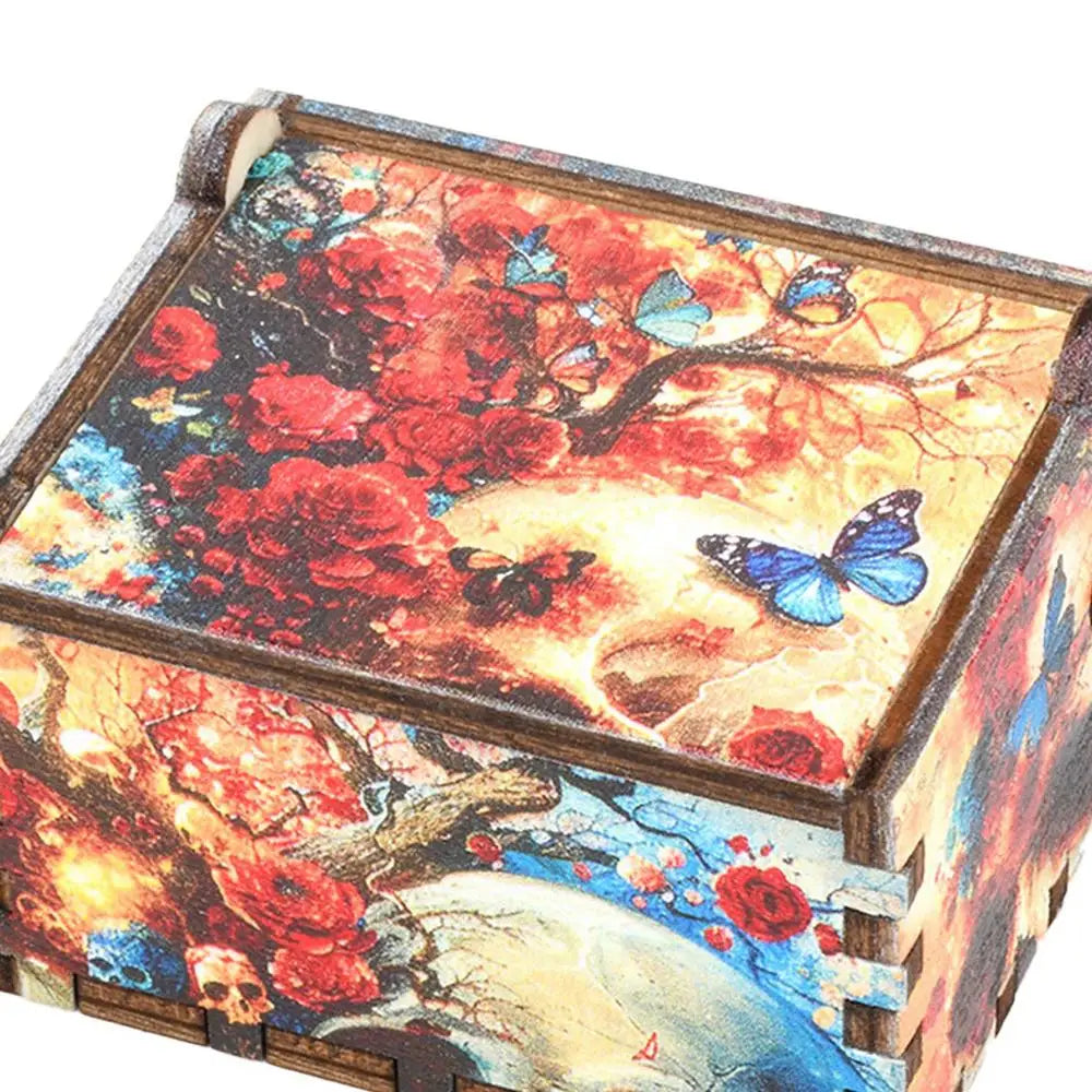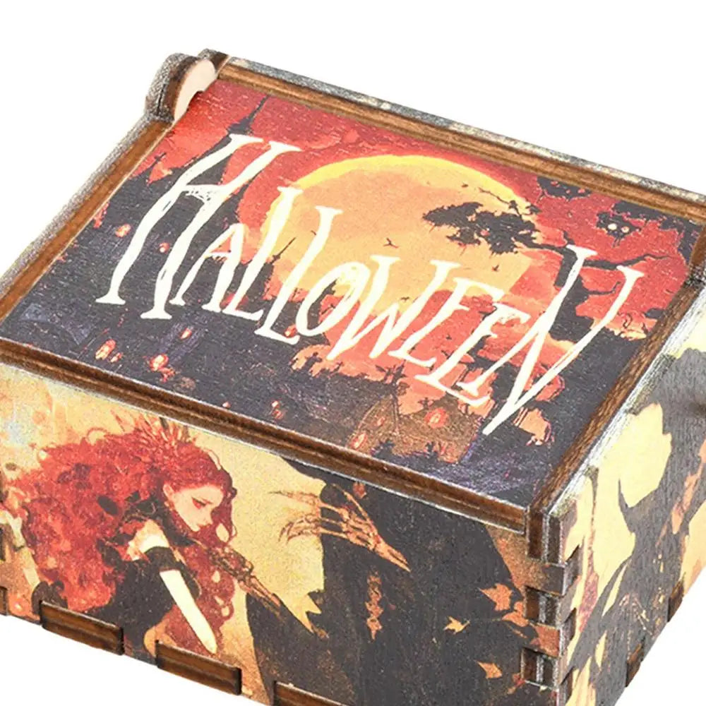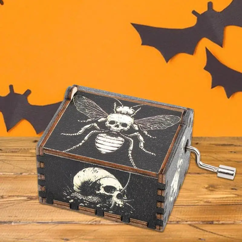 Wooden Halloween Music Box - Hand-Cranked Wooden Music Box